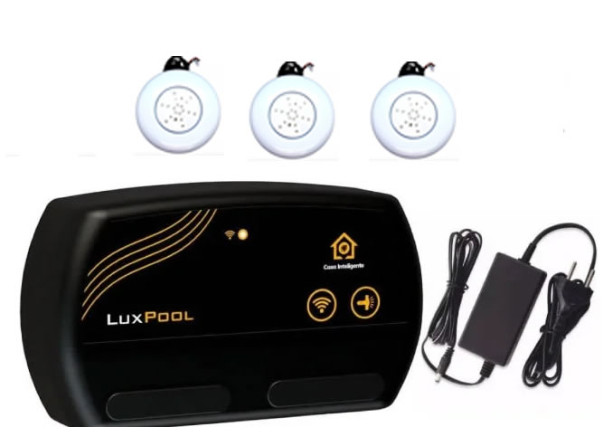 Kit 3 Ieds RGB 18 w ABS 140 mm + Comando + Fonte Wi-Fi - Luxpool