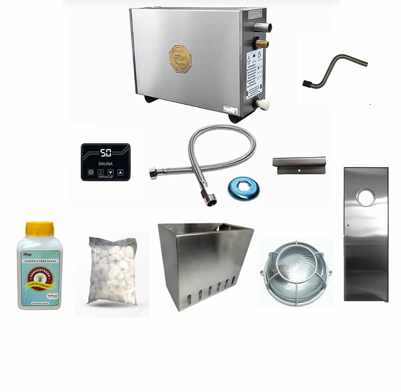 Kit de Sauna Vapor Elétrica Top Turbo 9 kW 12,5 m³ 220V/380v Bif./Trif. Completo Impercap