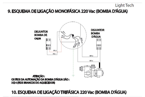 Utilize as cores determinadas no manual: Preto e Vermelho para o disjuntor do trocador; Branco 3 e 4 para a bomba. [cite_start]É obrigatório o uso do fio verde (terra)[cite: 10, 11].