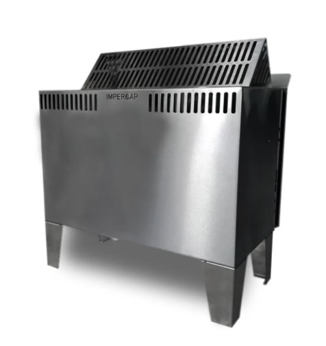 Os geradores de calor para sauna seca da Impercap são equipamentos nacionais fabricados totalmente em aço inox, com calha porta pedras, grade de proteção, cabos especiais em silicone resistentes ao calor, proteção térmica no fundo e acompanha um Painel de Comando Digital com garantia de 8 Anos contra defeito de fabricação para painel de comando e 1 ano de garantia contra defeito de fabricação para a sauna.
